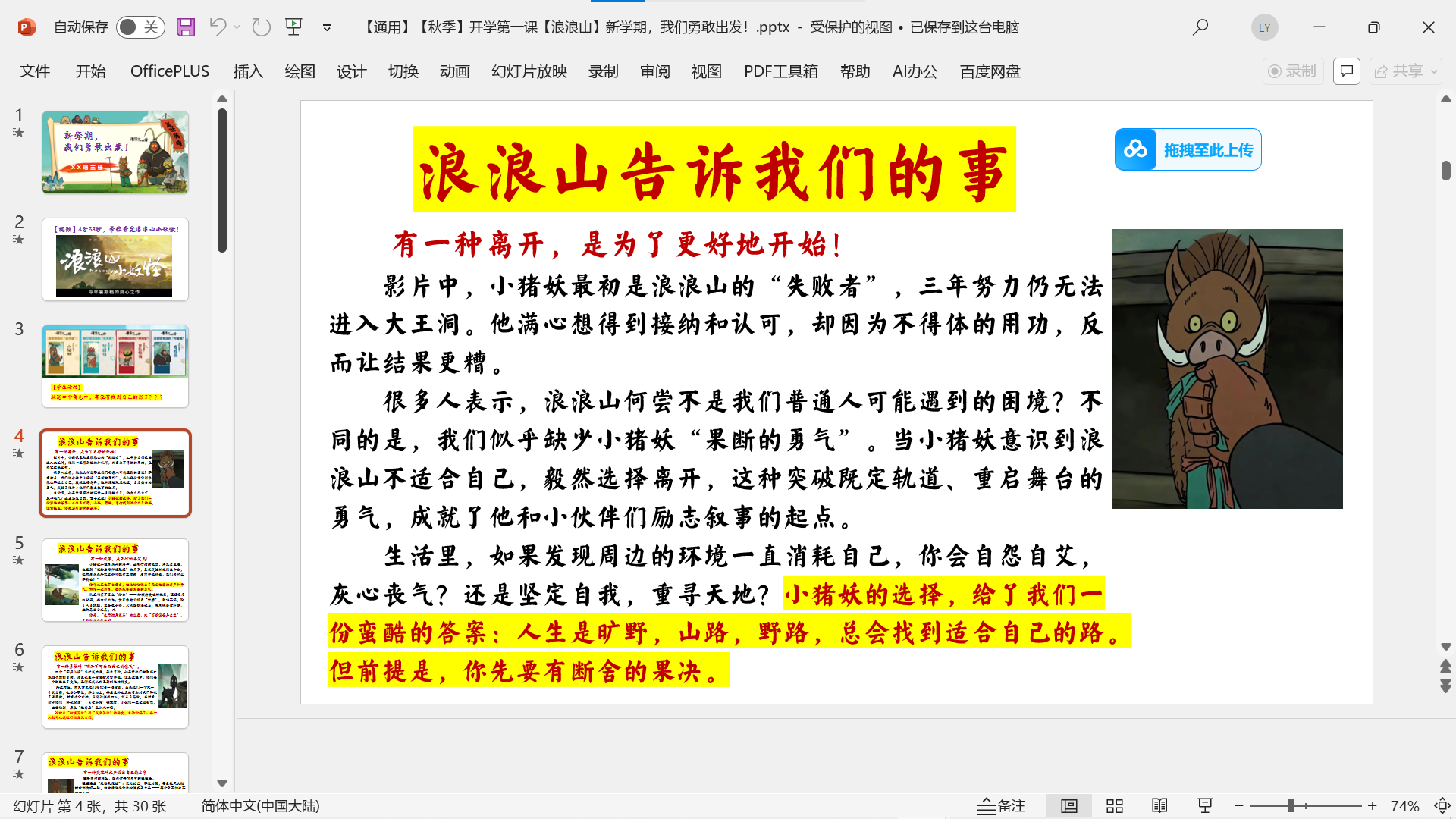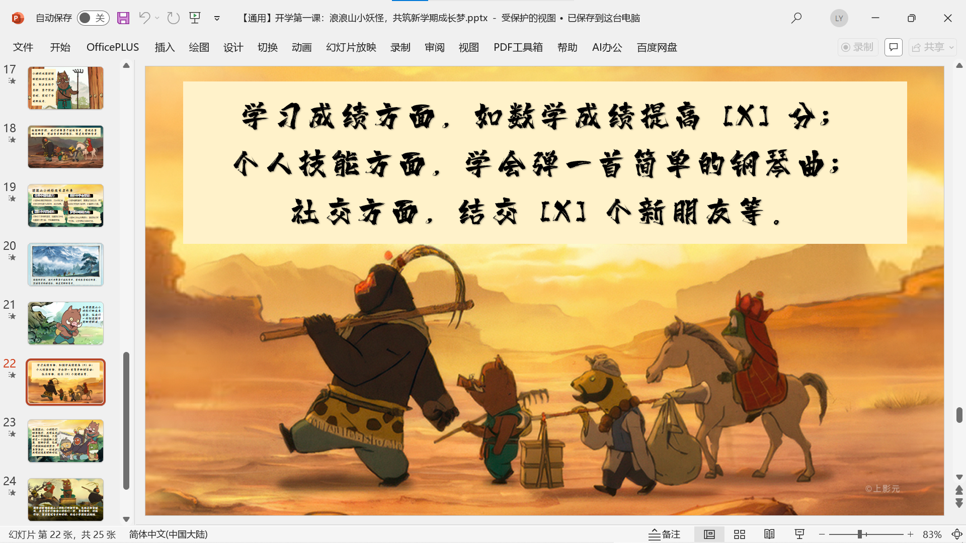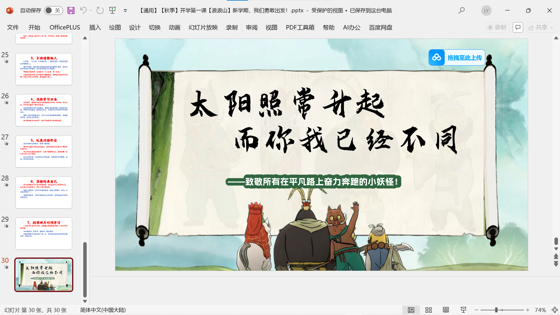 2025年秋《开学第一课》主题课件PPT (开学快闪/开学收心/家长会/ 校规班规/演讲稿/ Word教案班会) 2025年秋更新《浪浪山》课件2个 版面所限,此处仅展示部分内容 更多内容请自行下载观看 小程序内搜索标题下载↓ 本文已在智库云选由admin发布 文章来源:https://www.zcool.top/155/ 文章导航 上一页上一篇文章:【通用】【秋季】【上】暑假开学收心第一课《新学期做闪光的自己》免费下载下一页 下一篇文章:2025秋季开学校长讲话资料包 免费下载 撰写评论 取消回复您的邮箱地址不会被公开。 必填项已用 * 标注Write your comment here… *