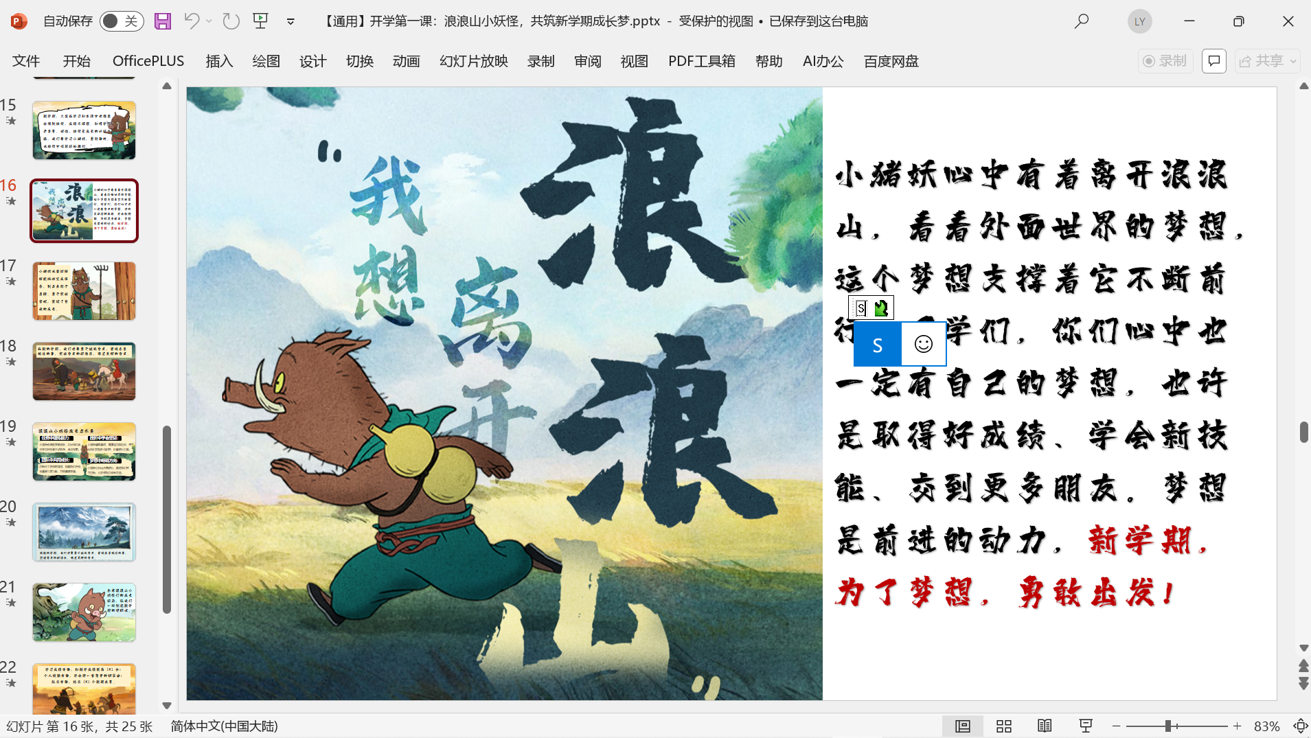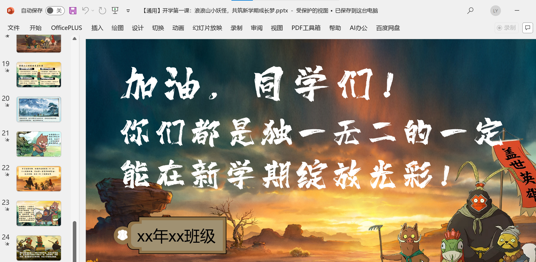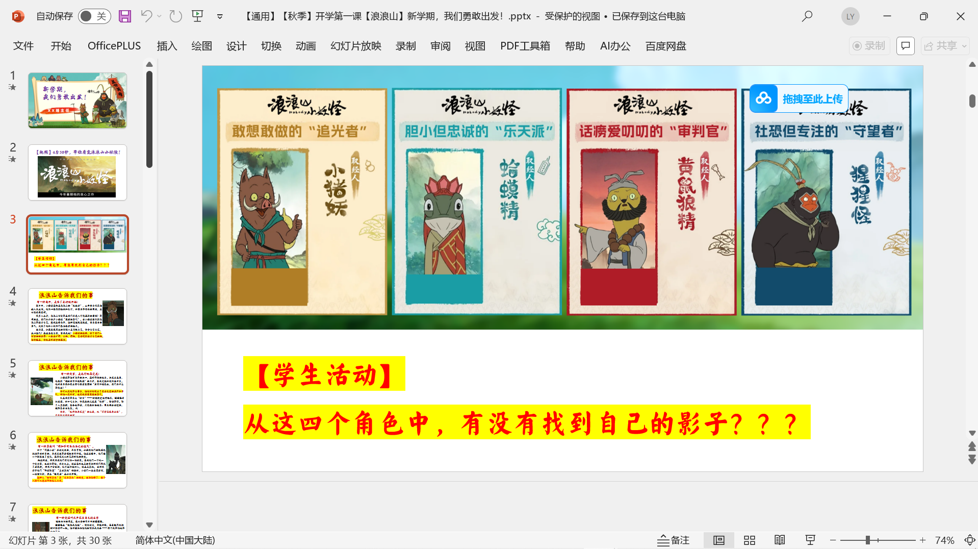 2025年秋《开学第一课》主题课件PPT (开学快闪/开学收心/家长会/ 校规班规/演讲稿/ Word教案班会) 2025年秋更新《浪浪山》课件2个 版面所限,此处仅展示部分内容 更多内容请自行下载观看 小程序内搜索标题下载↓ 本文已在智库云选由admin发布 文章来源:https://www.zcool.top/155/ 文章导航 上一页上一篇文章:【通用】【秋季】【上】暑假开学收心第一课《新学期做闪光的自己》免费下载下一页 下一篇文章:2025秋季开学校长讲话资料包 免费下载 撰写评论 取消回复您的邮箱地址不会被公开。 必填项已用 * 标注Write your comment here… *
